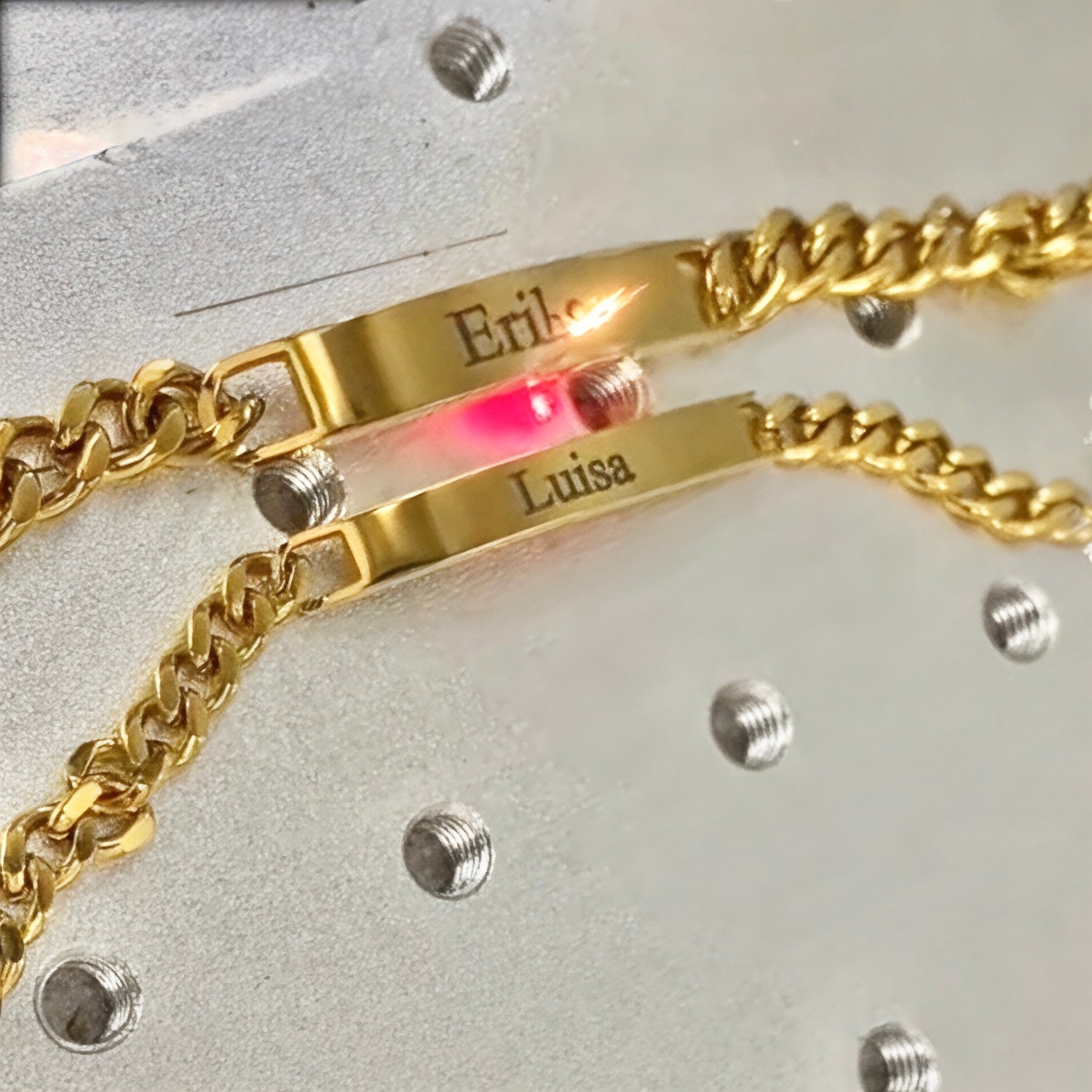 A personalized bracelet crafted to celebrate the people and moments that matter most. Each piece is made to order with your custom engraving — names, initials, dates, or a meaningful word that keeps your connection close.