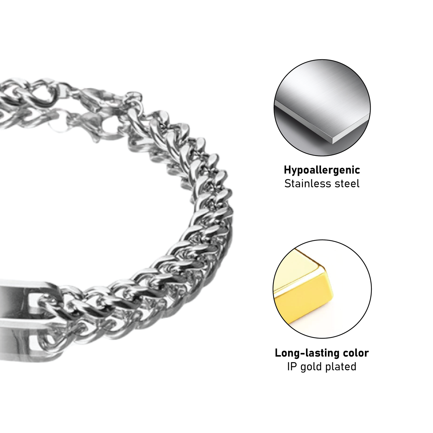 All bracelets are crafted from high-quality stainless steel — durable, rust-resistant, and safe for sensitive skin.